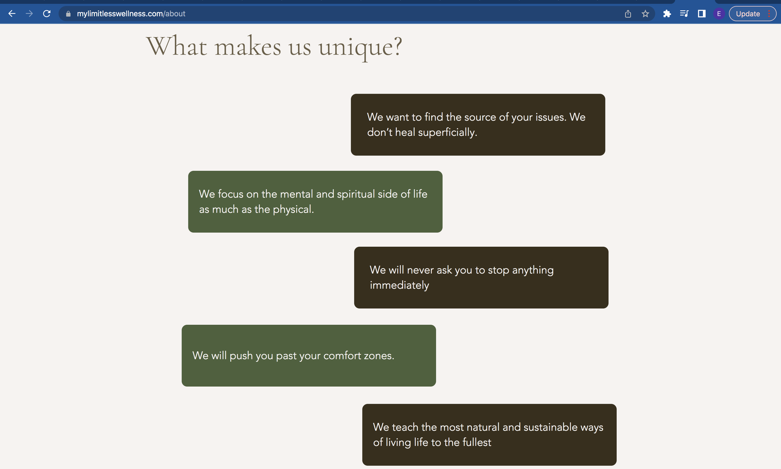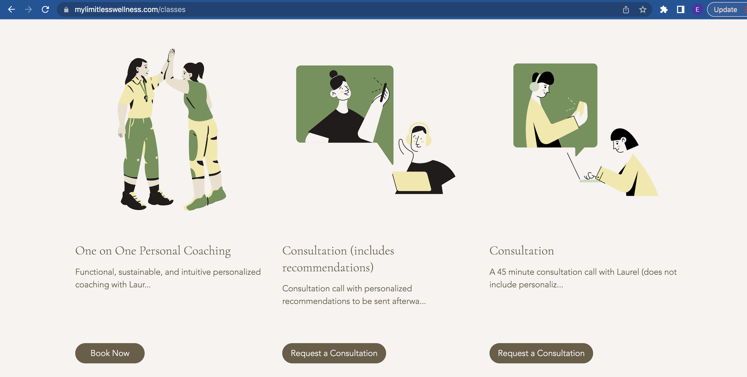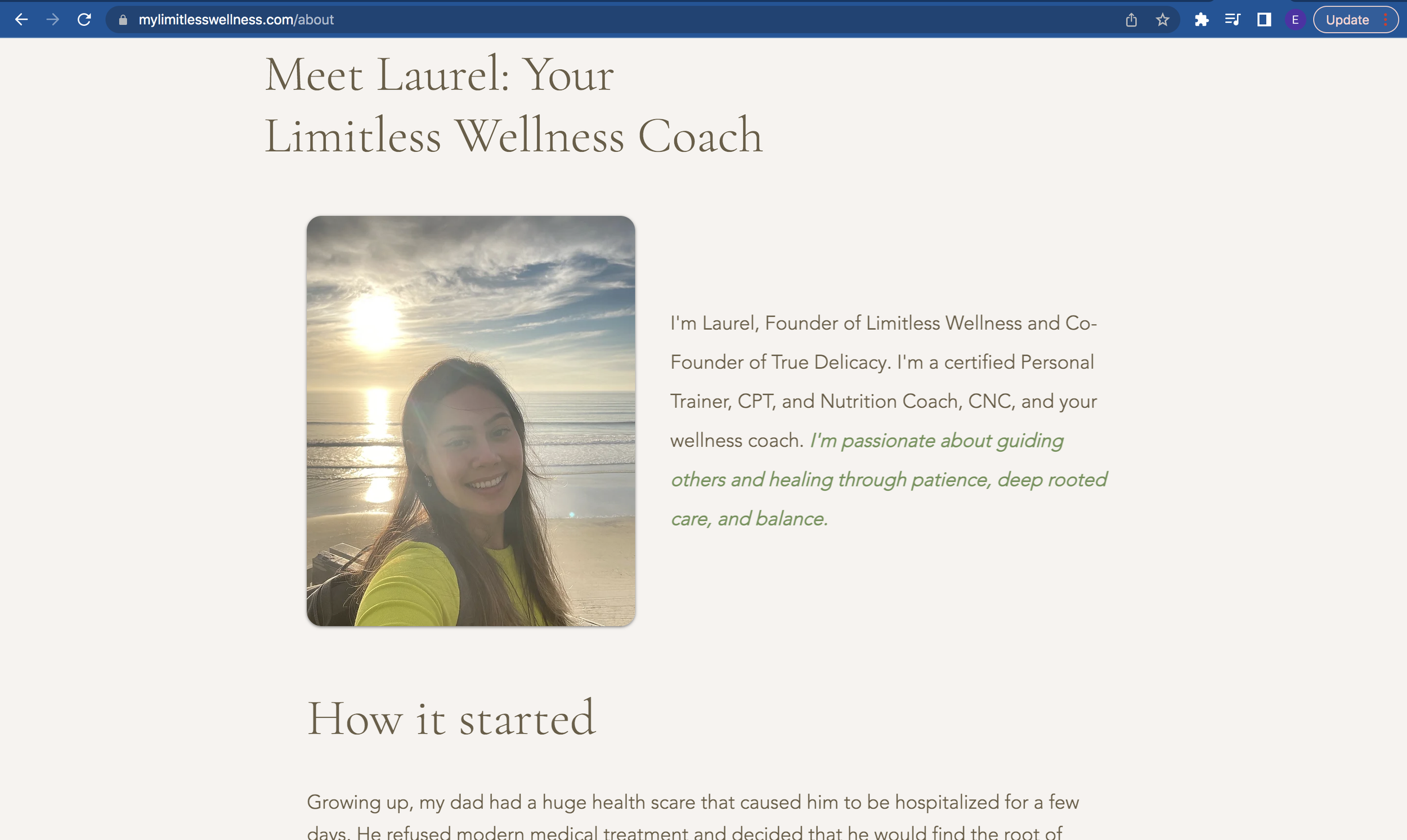 For Laurel and Limitless Wellness, a new website signified a new beginning. After looking at various sites for inspirations and discussing her brand, ideas, and the future of Limitless, Laurel and I decided on the following goals: