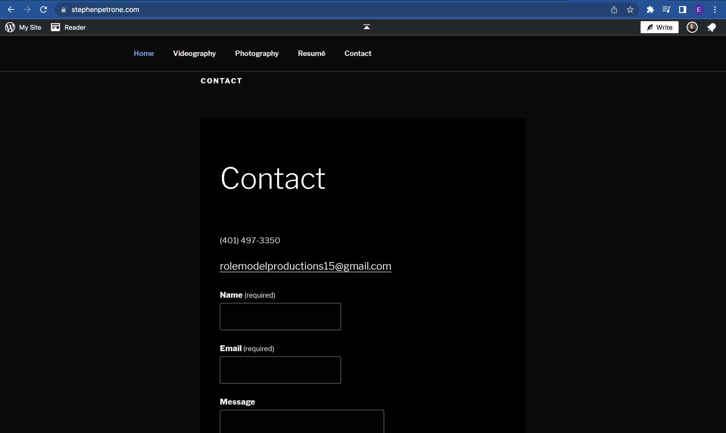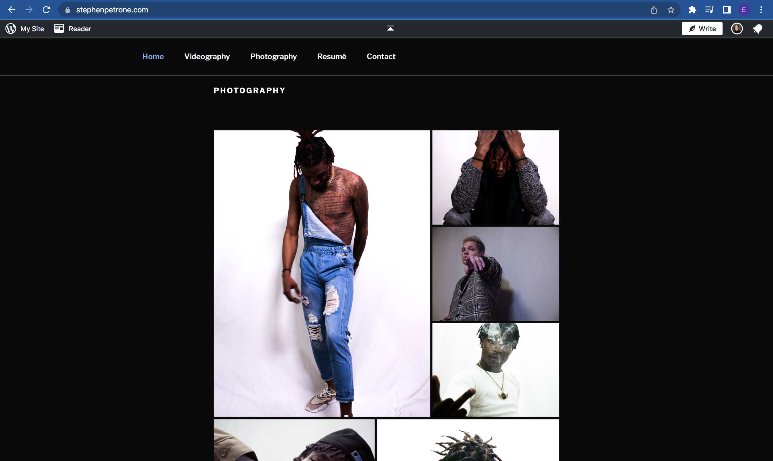 For Stephen’s site, Wordpress was the best option. I chose the “Twenty-Seventeen” template as the starting point. Right off the bat, the site autoplays his ‘Reel’ as a header video on the home page. I used Paralax Scrolling to showcase additional photography and to move smoothly through each of the menu items.